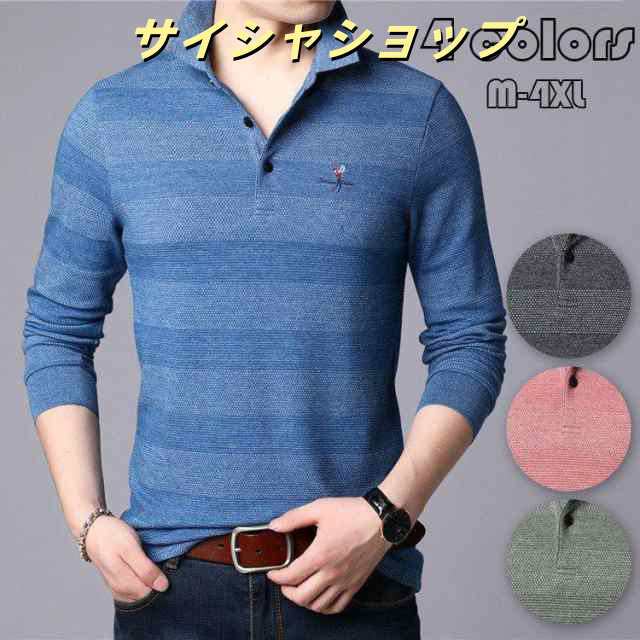 ポロシャツ ビジネス メンズ トップス 大きいサイズ 長袖 ボーダー柄 トレンド ゴルフウェア おしゃれ スポーツ 秋冬 ゴルフ シャツ 紳士服 カジュアル