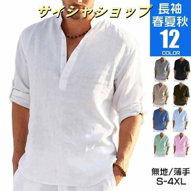 長袖シャツ メンズ カジュアルシャツ 無地 カプリシャツ スタンドカラーシャツ 綿麻風 ちょいワル 春服 夏服 20代 30代 40代 50代 父の日 プレゼントギフト 敬老の日 おしゃれ プルオーバーシャツ 薄手 秋服 白シャツ リラックス ス 開襟シャツ コットンシャツ きれいめ リゾート 旅行 大きいサイズ