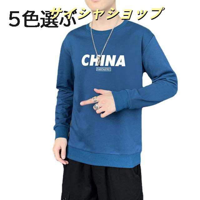 長袖Tシャツ パーカー メンズ 丸首 薄手 メンズTシャツ ゆったり 英字柄Tシャツ シンプル 大きいサイズ オシャレ カジュアルウェア 春秋