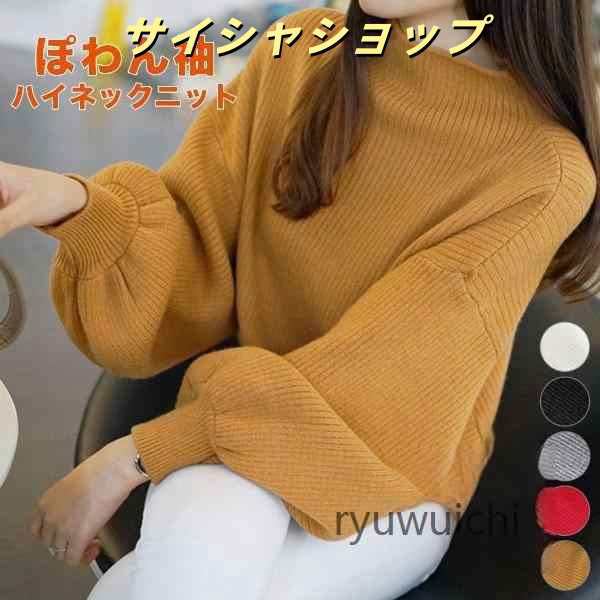 ニット レディース セーター ハイネック モックネック ボリューム袖 ポワン袖 シンプル おしゃれ