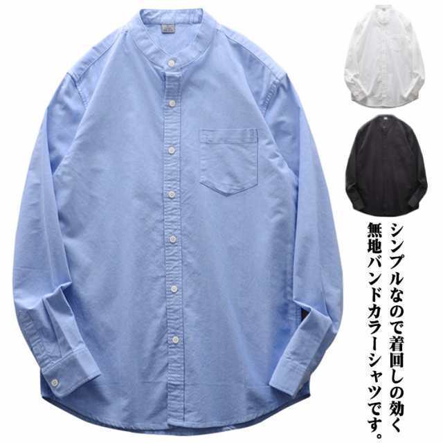 長袖 前開き シャツ カジュアルシャツ ノーカラー 襟なしシャツ シャツ シャツ メンズ 胸ポケット カジュアル ビジネス 仕事着 長袖シャツ 衿無し 春