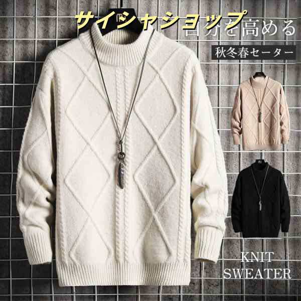 ニットセーター メンズ カットソーニット 無地 タートルネック クルーニット ケーブル編み シンプル ビジネス セーター 長袖 男性 秋冬