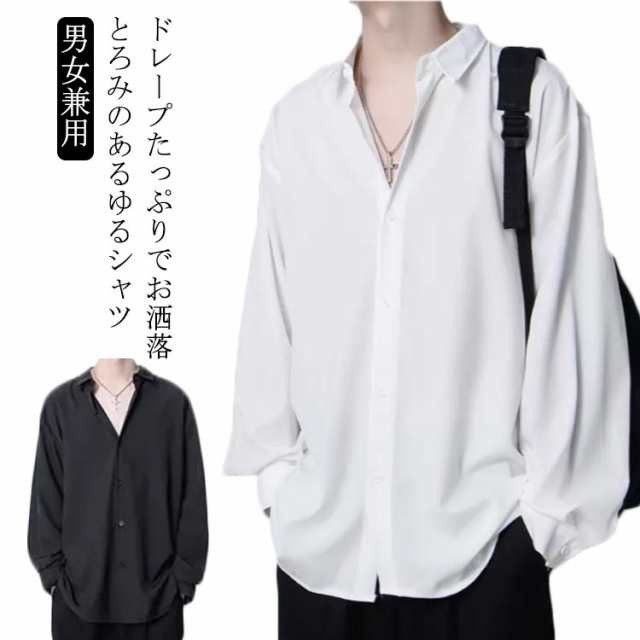シャツ 男性 メンズ 黒 長袖 カジュアルシャツ ゆるシャツ とろみシャツ 白 ワークシャツ トップス ビッグシルエット シンプル ストリート系 開襟シャツ ドロップショルダー 女性 ゆったり 羽織 春夏 春服 夏服 シャツ 原宿系