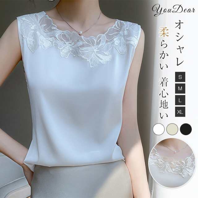 レースブラウス インナー スーツインナー トップス ジャケットインナー 華やか フォーマル 白tシャツ 袖なし きれいめ カジュアル 母 ママ ビジネス 肌ざわりもよく 可愛い 透け感