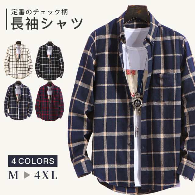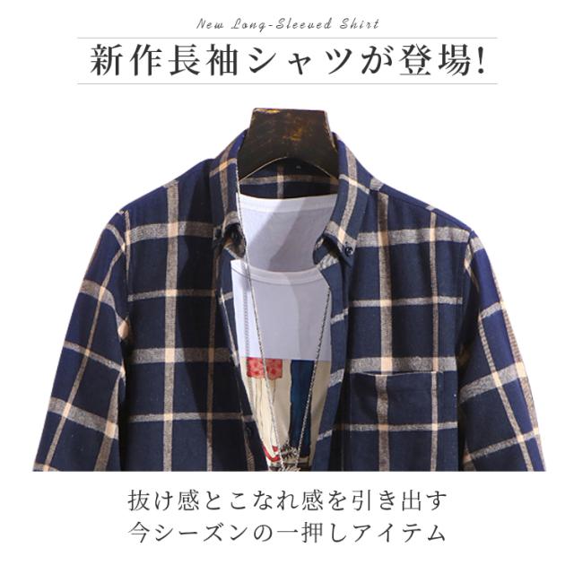 長袖シャツ ネルシャツ チェック柄 トップス メンズ ボタンダウン レギュラーシルエット