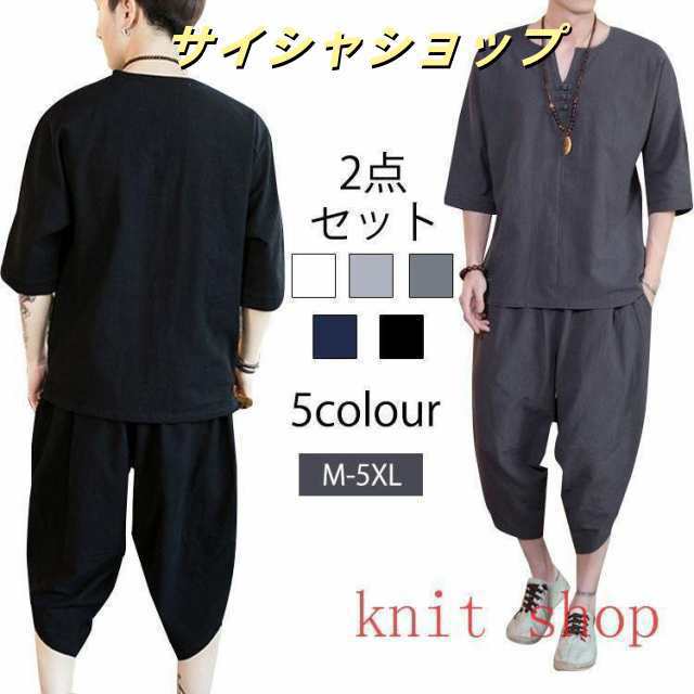 メンズ 夏服 部屋着 セットアップ メンズ Tシャツ ハーフパンツ ダボシャツ パンツ 上下 セット アンサンブル 半袖 Vネック 和式パーカー