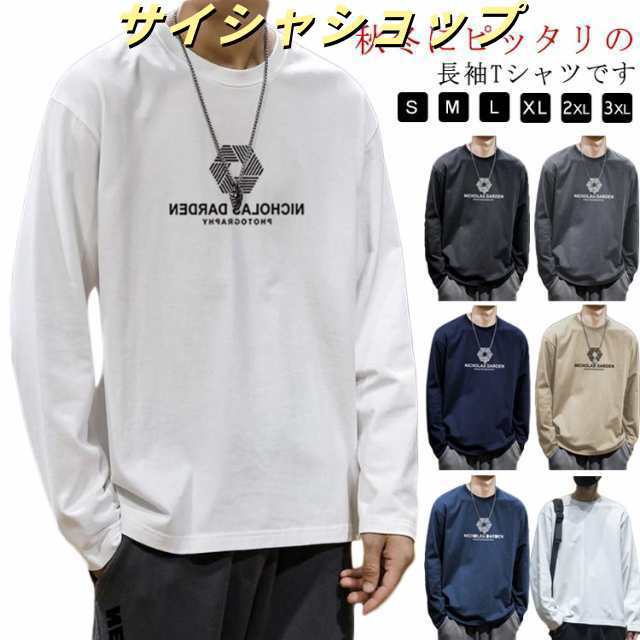 ロングTシャツ Tシャツ メンズ 文字 ブランド ロンT 長袖tシャツ メンズ ロンT 長袖 ロングTシャツ プリント 秋服 Tシャツ Uネック クルーネック カットソー トップス スリム アメカジ