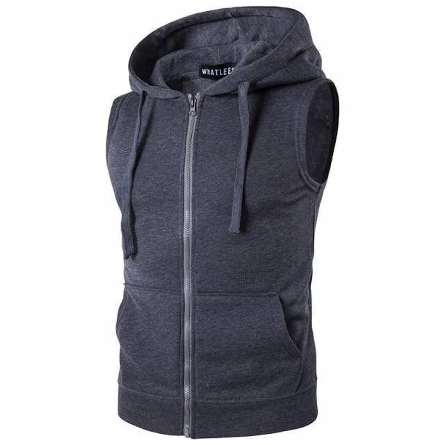 パーカー メンズ ジップアップパーカー ノースリーブパーカー スウェット 夏服 パーカ 袖なし フード付きベスト