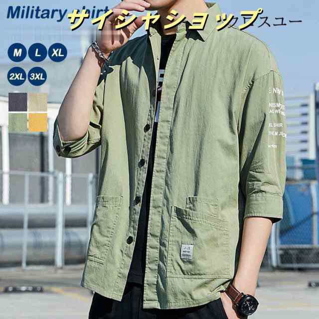 七分袖シャツ メンズ 半袖シャツ ミリタリーシャツ ワークシャツ 春物 無地 綿 トップス おしゃれ 春 春服 ポケット