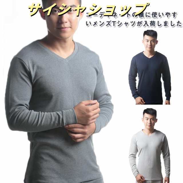 春秋 冬 長袖 メンズ メンズ Tシャツ カットソー 長袖Tシャツ インナーシャツ インナー 綿 Vネック 秋 春 重ね着 大きいサイズ トップス カットソー ロングシーズン