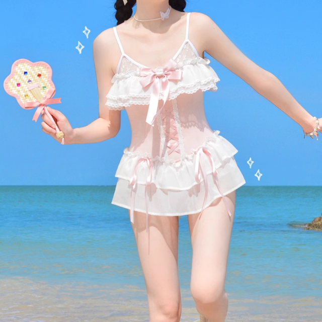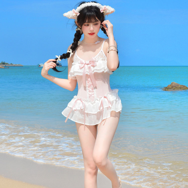 関連キーワード: #水着 #ワンピース水着 #フリル #リボン #可愛い #ホワイト #ピンク #ドーリー #ビーチ #プール #リゾート
