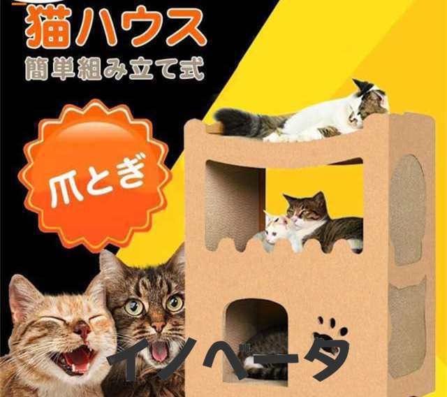 猫用爪とぎ キャットハウス ダンボールハウス 爪とぎ 高密度段ボール ストレス解消 通気 二層 組立簡単 キャットタワー 爪とぎベッド 猫箱