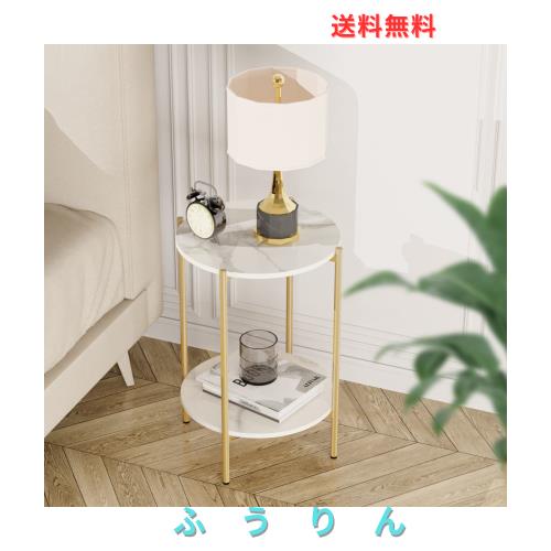 UNHO サイドテーブル 丸 コーヒーテーブル 大理石 ゴールド脚 ソファ横 ベッド横 テーブル 小さめ ベッドサイドテーブル おしゃれ 北欧