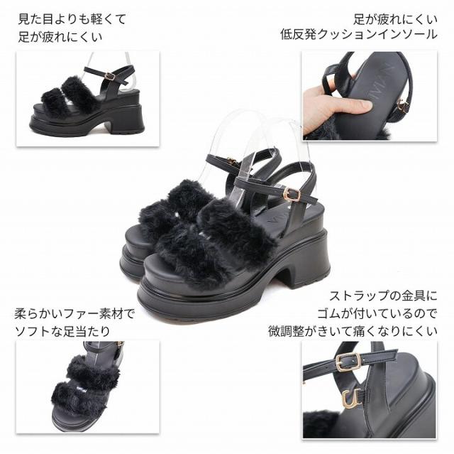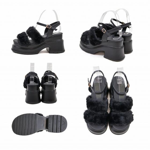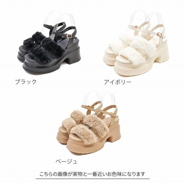 【25秋冬新作】ふわふわファー厚底ストラップサンダル