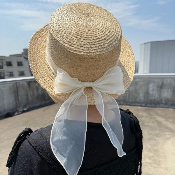 軽やかな素材感と透け感のあるオーガンジーリボンが絶妙にマッチしたカンカン帽。