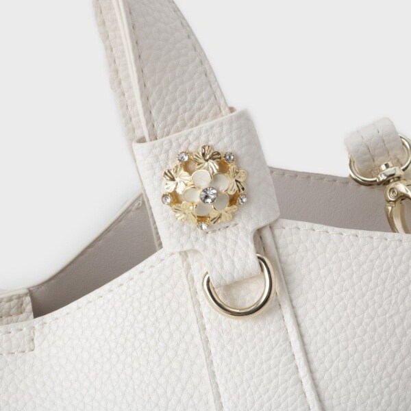 取外し可能なDカン付きのフラワーパーツが付いたミドルサイズのトートバッグ