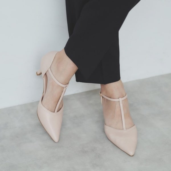 脚を美しく魅せてくれるTストラップのパンプス
