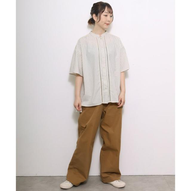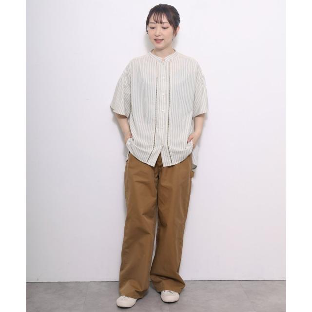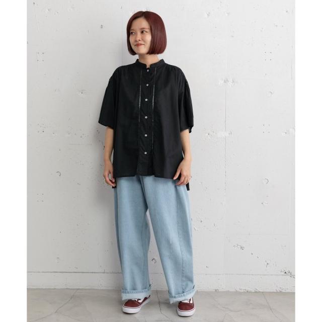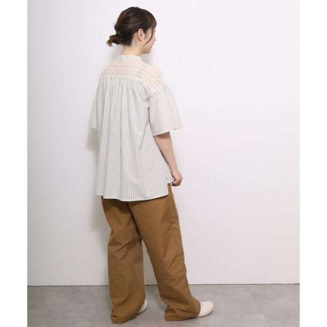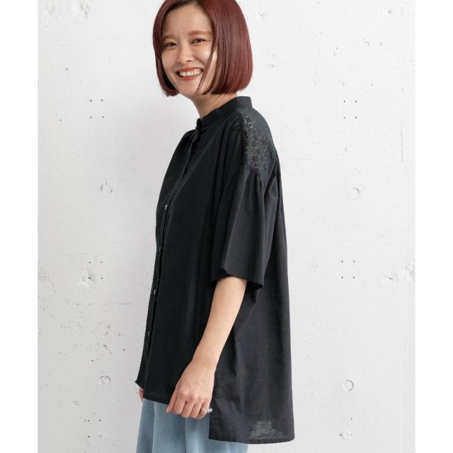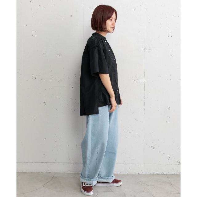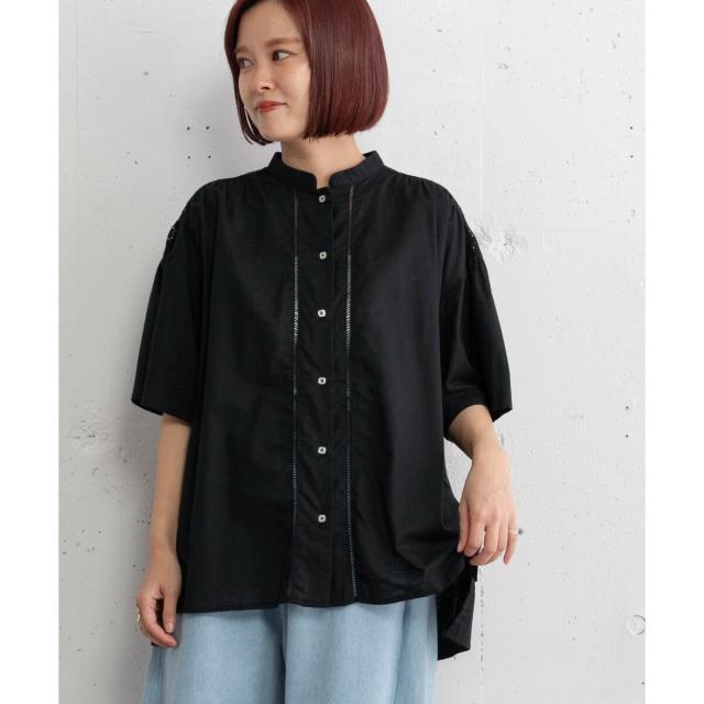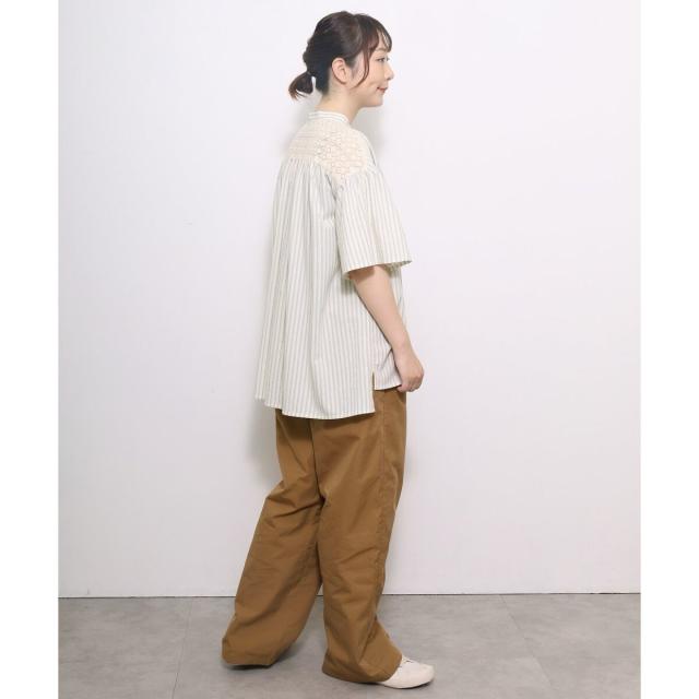 ギャザー入りのフレアスリーブが可憐なブラウス。ヨークとフロントのレース使いがアンティーク感のあるデザイン。ドライなタッチのリネン混生地を使用しており、さらりと快適な着心地です。ゆったりとしたサイジングで風通しが良く、真夏にも着やすい。肘が隠れる長めの袖丈で、カジュアル過ぎず、大人の女性に似合うシルエットに仕上がりました。トップスとしても、軽めの羽織りとしてもお使いいただけます。