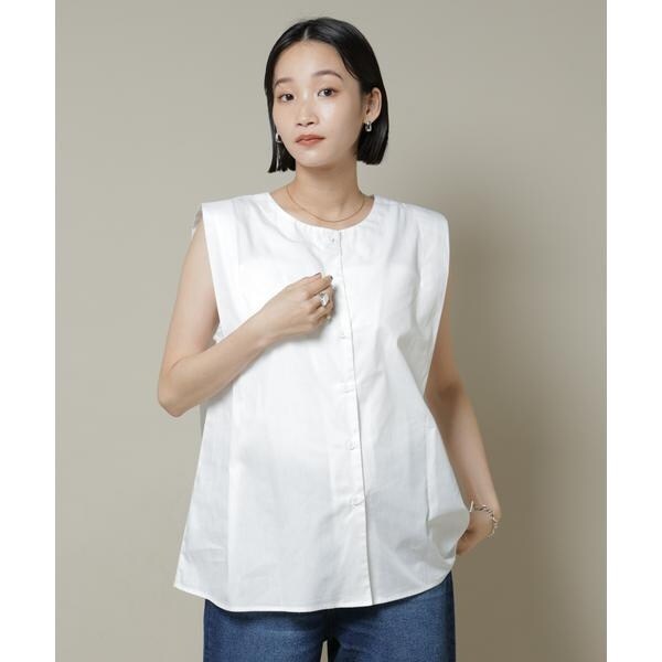ナノユニバース(NANO universe)/前後2wayブロードボタンデザインノースリーブブラウス
