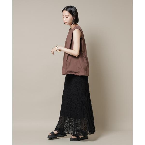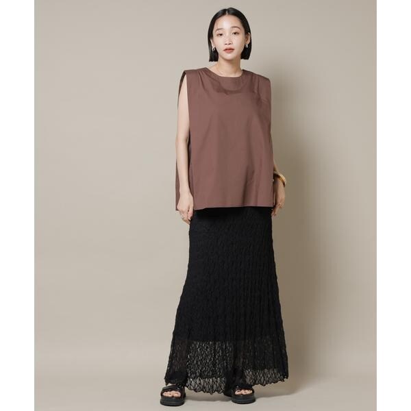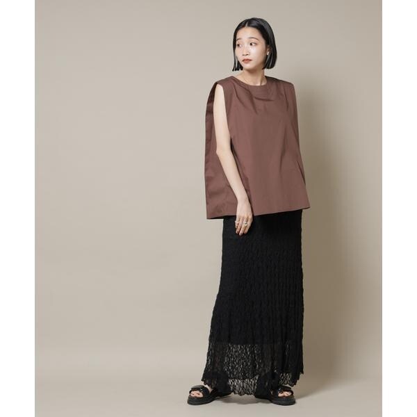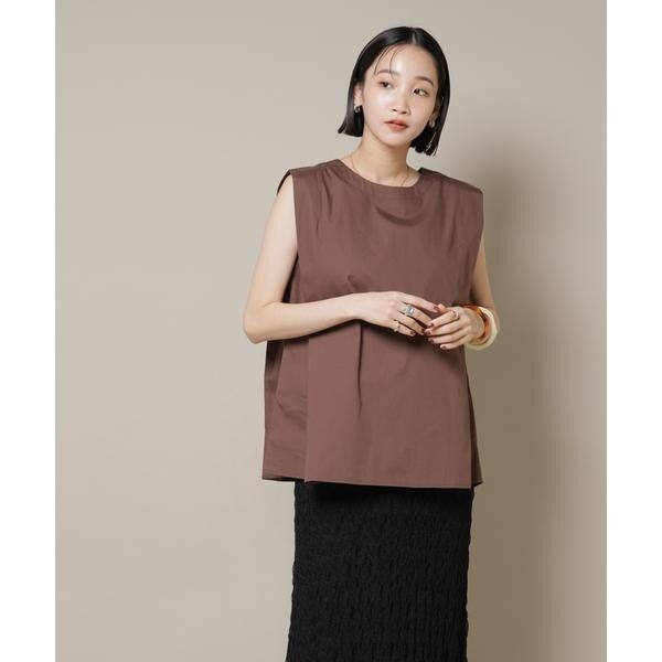 幅広い着こなしが楽しめる、前後2wayのノースリーブブラウス。、腕回りがスッキリしているのでジャケットやカーディガンのインナーとしても合わせやすく、ON/OFFで着まわせる万能アイテムです。