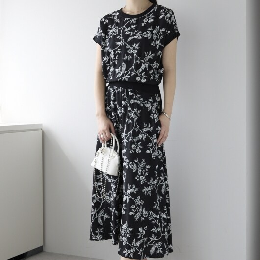 ♪個性的なボタニカル柄のプリント配色で夏美人に。