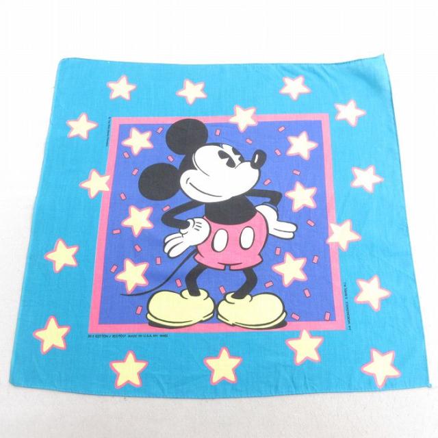 中古 バンダナ 80年代 80s ディズニー DISNEY ミッキー MICKEY MOUSE USA製 水色 中古 古着