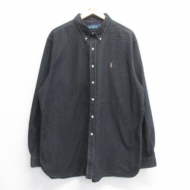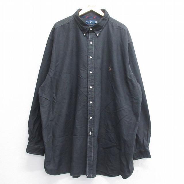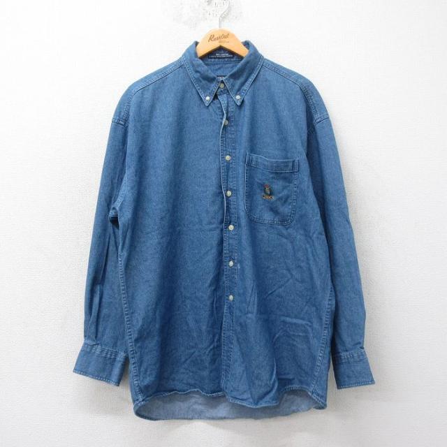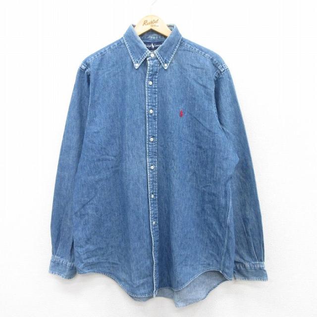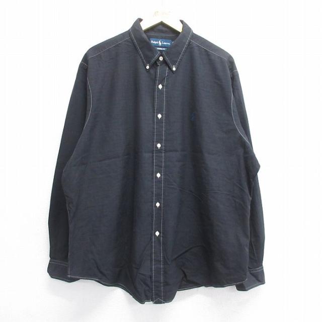 【商品名】 XL★古着 ラルフローレン チャップス 長袖 ブランド シャツ メンズ 90年代 90s ワンポイントロゴ 大きいサイズ ロング丈 コットン ボタンダウン 紺 デニム