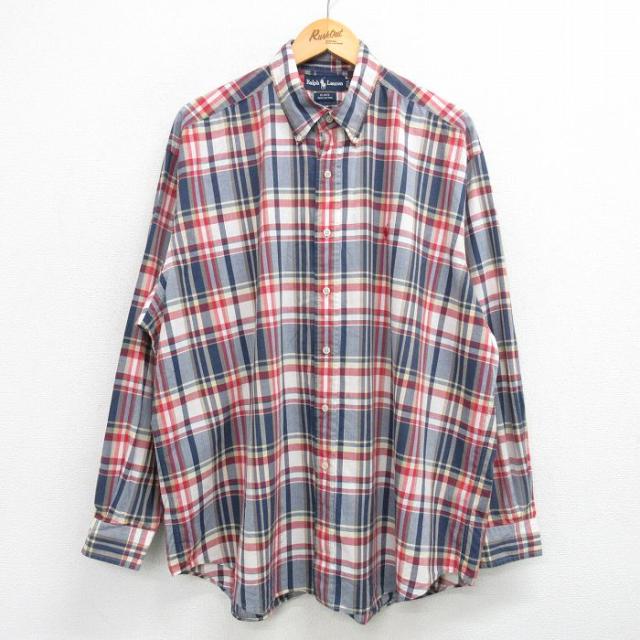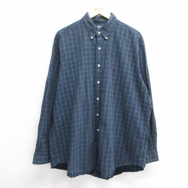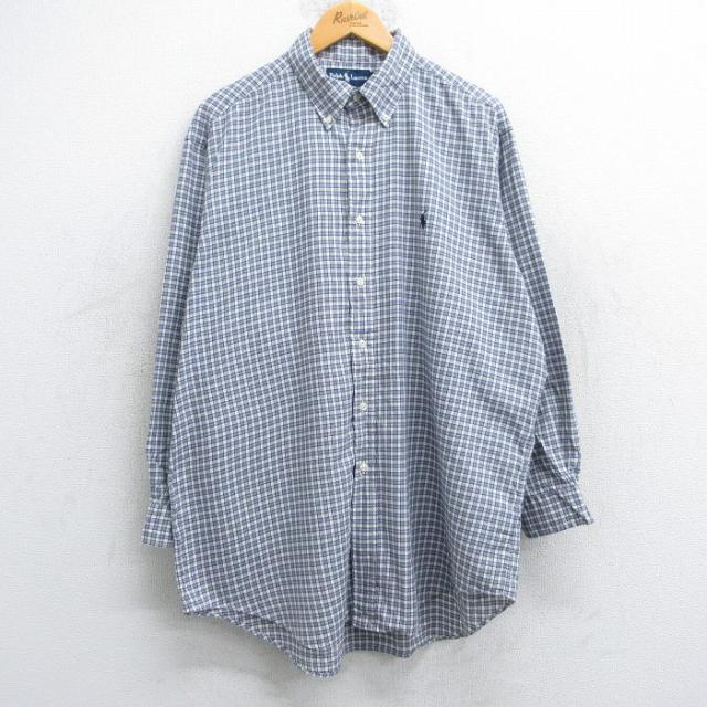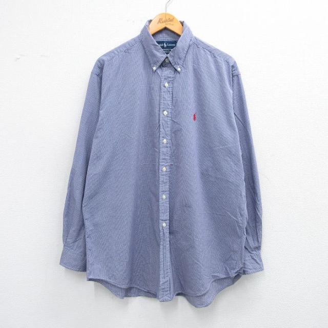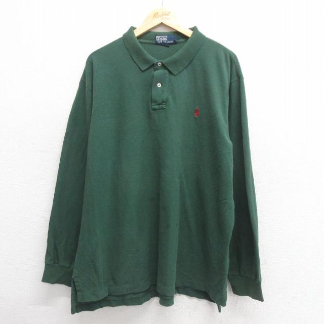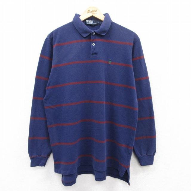 【商品名】 XL★古着 ラルフローレン 長袖 ブランド ポロ シャツ メンズ 90年代 90s ワンポイントロゴ 鹿の子 コットン USA製 紺他