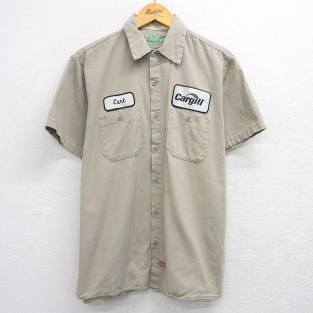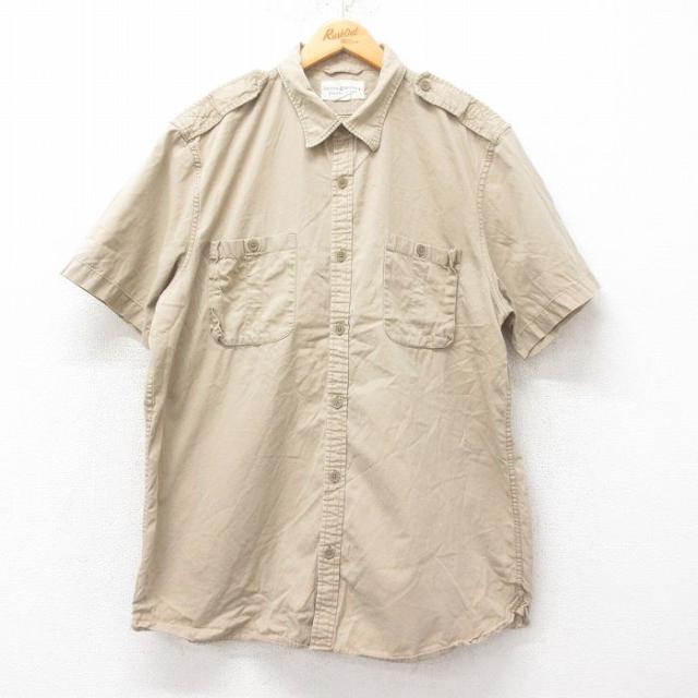 【商品名】 XL★古着 ラルフローレン デニムアンドサプライ 半袖 ブランド ワーク シャツ メンズ マチ付き ロング丈 コットン ベージュ【spe】