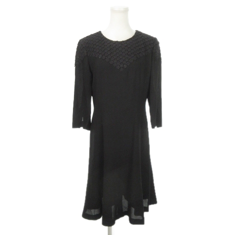 【中古】ジバンシィ GIVENCHY ヴィンテージ HI FORMAL ハイ フォーマル ワンピース ひざ丈 七分袖 レース 12 L 黒