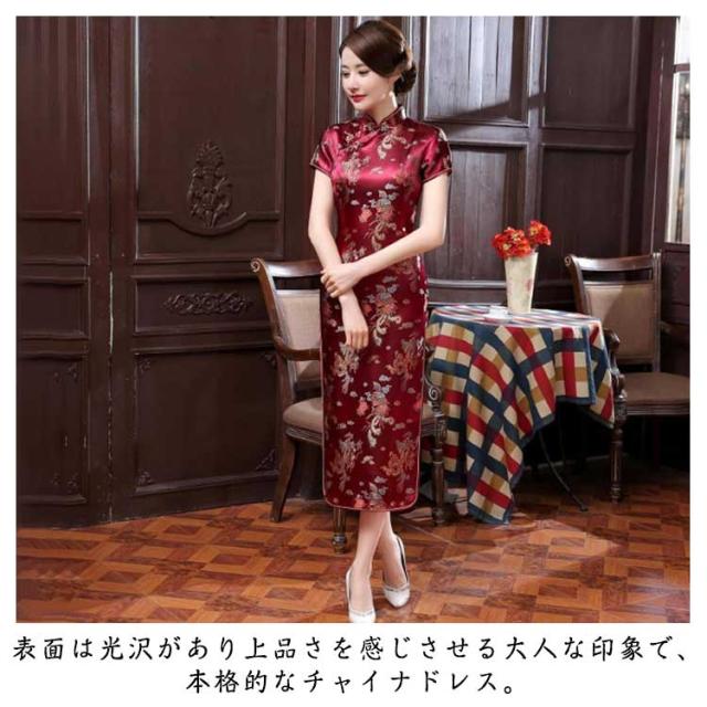 | ロング着丈で脚長効果抜群のオシャレなスタンドカラーチャイナドレス。 表面は光沢があり上品さを感じさせる大人な印象で、本格的なチャイナドレス。 ハロウィンのイベントはもちろん、ステージ衣装、結婚式の余興などさまざまなイベントで使用できるアイテム。 首元はチャイナボタンで留めるタイプ。 | |