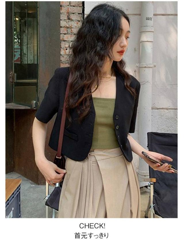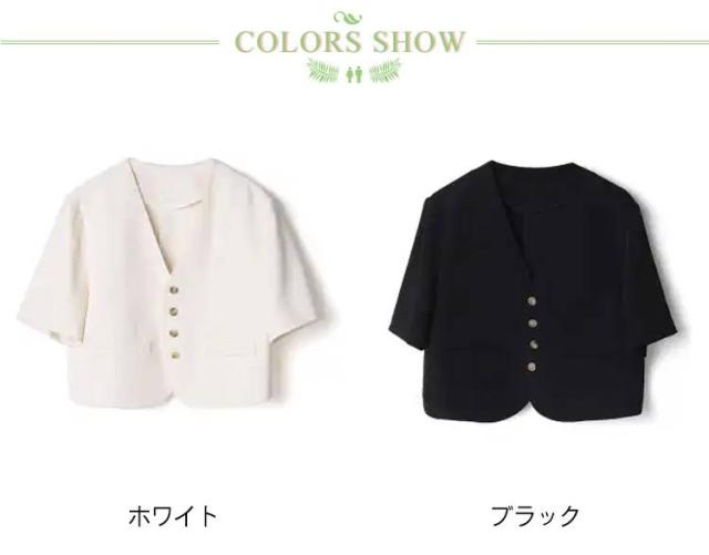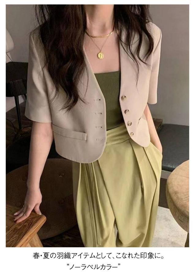 サマージャケット ジャケット ノーラペル レディース 半袖 ノーカラー シャツジャケット ライトジャケット ライトアウター ショート丈 春夏 きれいめ 無地 シンプル 薄手 上着 羽織 フロントボタン 職場 OL カジュアル ビジネス 送料無料