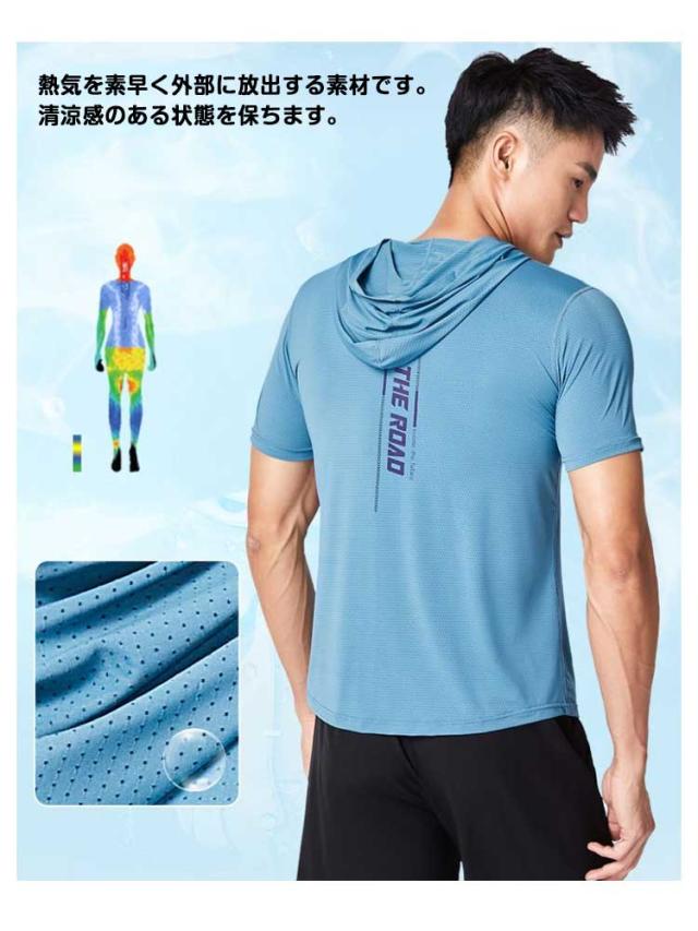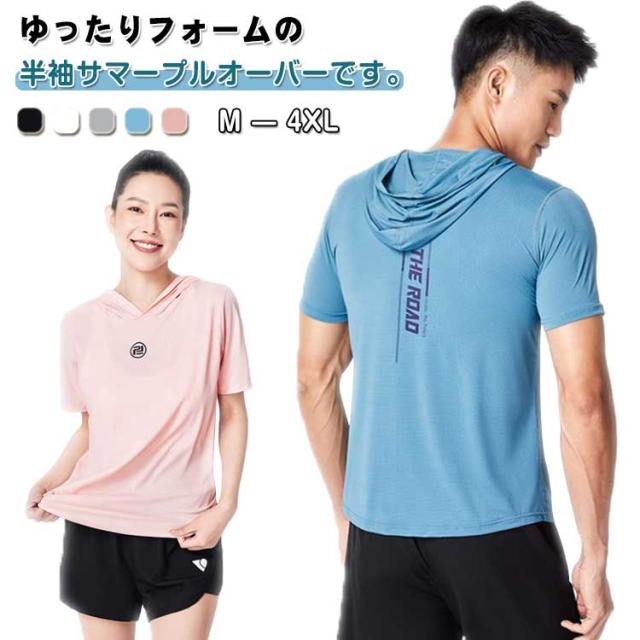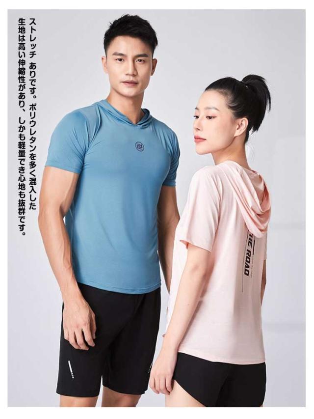 半袖パーカー Tパーカー 無地 メンズ パーカー レディース トップス 冷感 薄手 半袖 ジャージ フード付きtシャツ 30代 カットソー ストレッチ 柔らかい 涼しい ひんやり クール スポーツ カジュアル ルームウェア ダンス プルパーカー 20代 半袖 40代