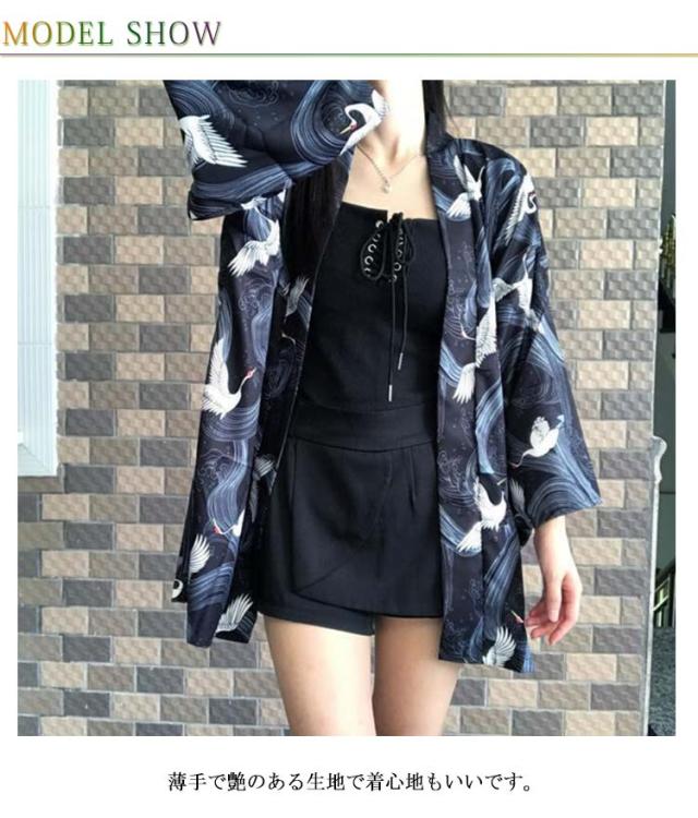 メンズ ゆったり 花火大会 カーディガン 和風 着物 七分袖 鶴柄 夏 L 羽織 アウター 浴衣 UVカット レディース 法被 甚平 ダンス衣装 じんべえ おしゃれ トップス 男女兼用 薄手 春夏秋 きれいめ コスプレ トップス 原宿系 S M 羽織 XL XXL