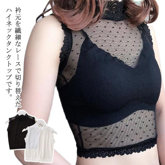 レディース 衿レース切替ハイネックタンクトップ ハイネック 薄手 衿レース切替ハイネックタンクトップ ニット タンクトップ シースルー サマー レース レイヤード おしゃれ シースルー ハイネック ノースリーブ 無地 重ね着 オフィス インナー トップス