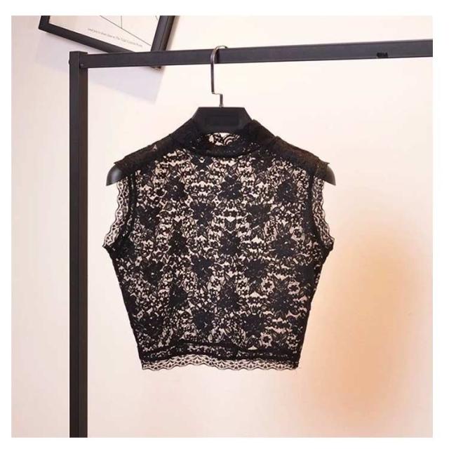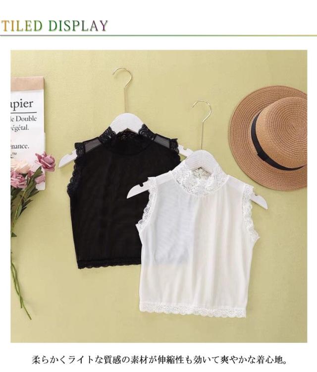 ハイネック 衿レース切替ハイネックタンクトップ シースルー ハイネック ノースリーブ レディース サマー タンクトップ おしゃれ ニット レイヤード レース シースルー 薄手 重ね着 無地 衿レース切替ハイネックタンクトップ オフィス インナー トップス