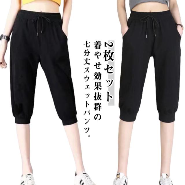 2枚セット スウェットパンツ 夏 ジャージ 7分丈パンツ レディース ウェア サルエルパンツ スウェットパンツ ジャージ クロップドパンツ ルームパンツ スウェット ランニングパンツ ヨガパンツ ヨガウェア フィットネス レディース 薄手 パンツ スポーツ 春 夏