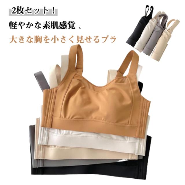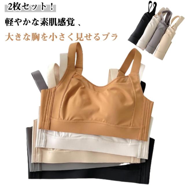 ノンワイヤーブラ 小さく見せるブラ 脇高 垂れ防止 ノンワイヤー 大きいサイズ 大きい胸を小さく見せるブラ ブラジャー 胸を小さく見えるブラジャー ナイトブラ フルカップ 2枚入 胸を小さく見せるブラ 脇肉対策 バストすっきり 補正