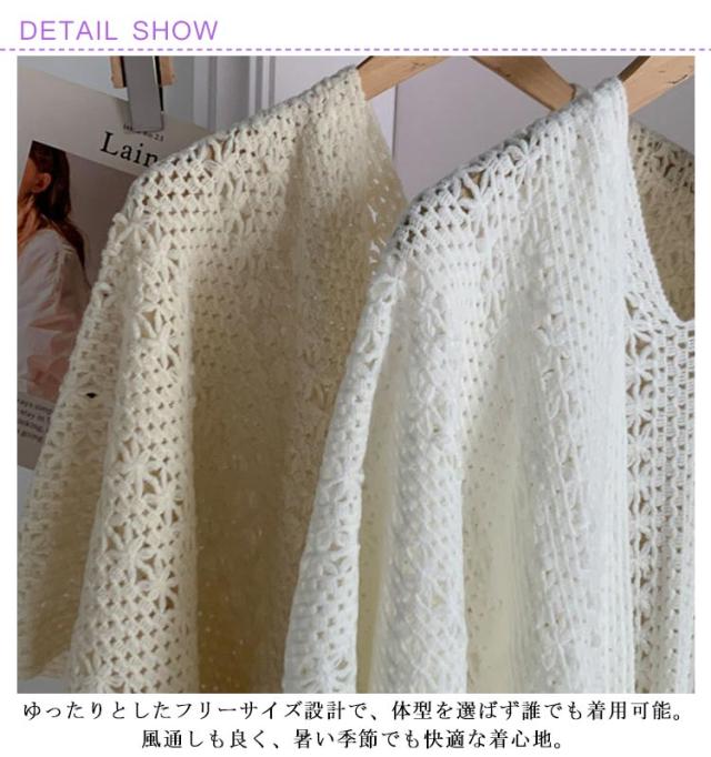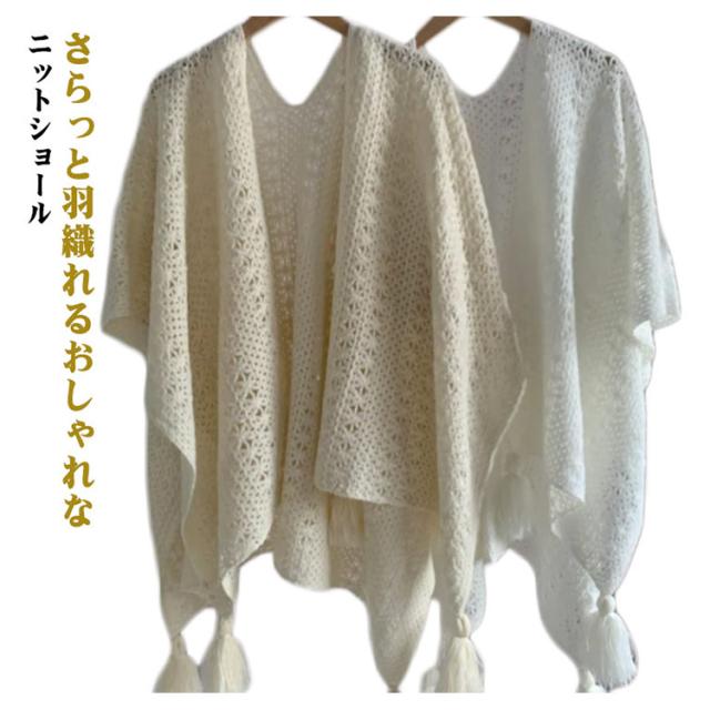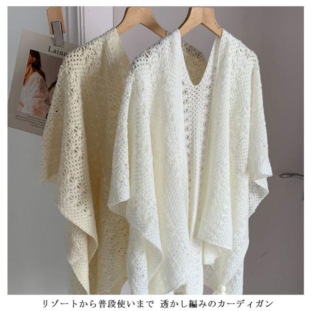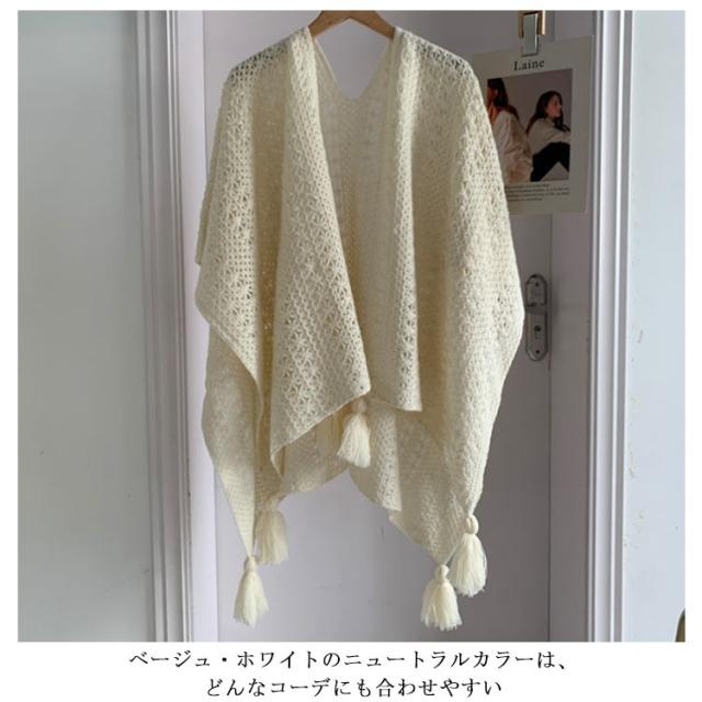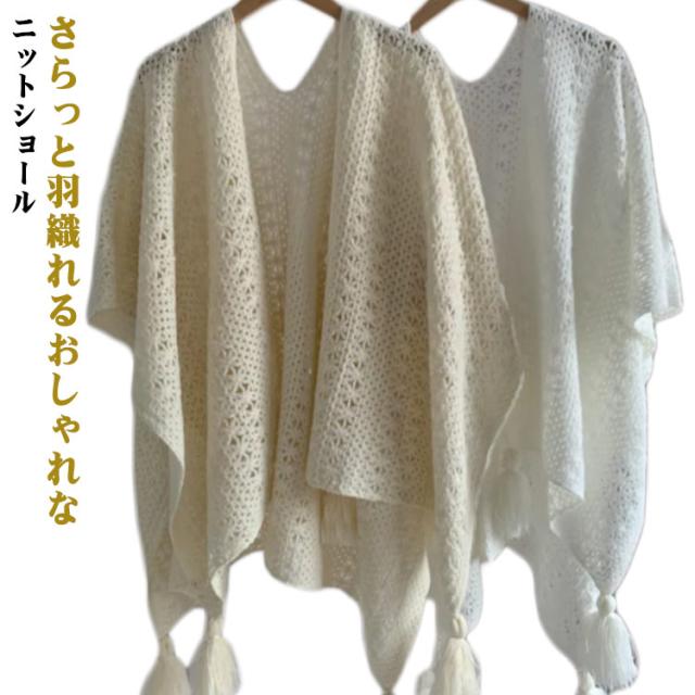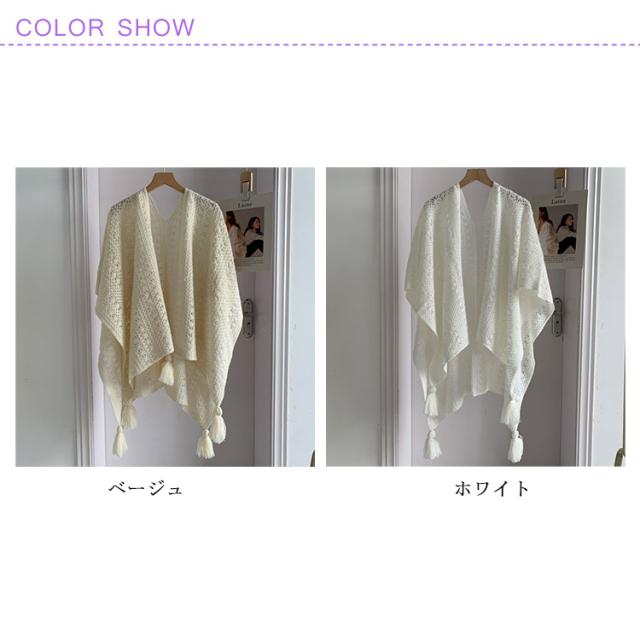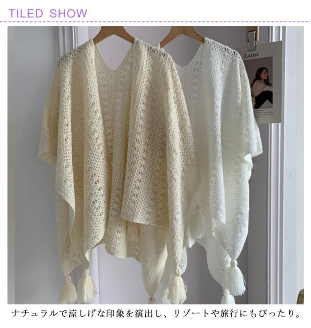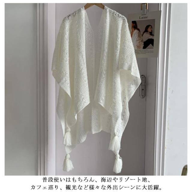 ニットショール レディース サマーカーディガン フリンジショール フリンジカーディガン 透かし編み 日焼け対策 春夏 夏用 紫外線対策 旅行 アウター ナチュラル シンプル 白 ベージュ フリーサイズ 薄手 軽量 おしゃれ