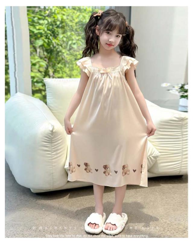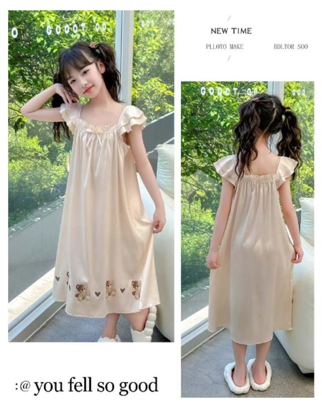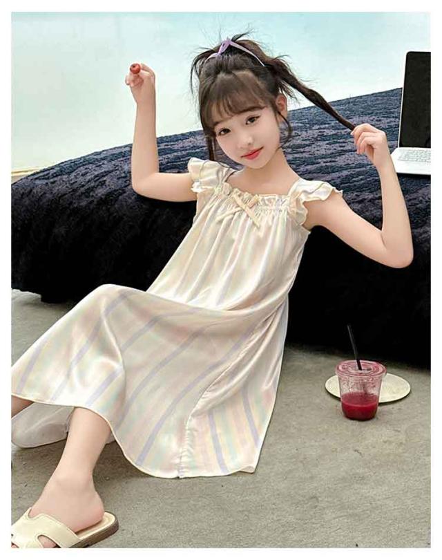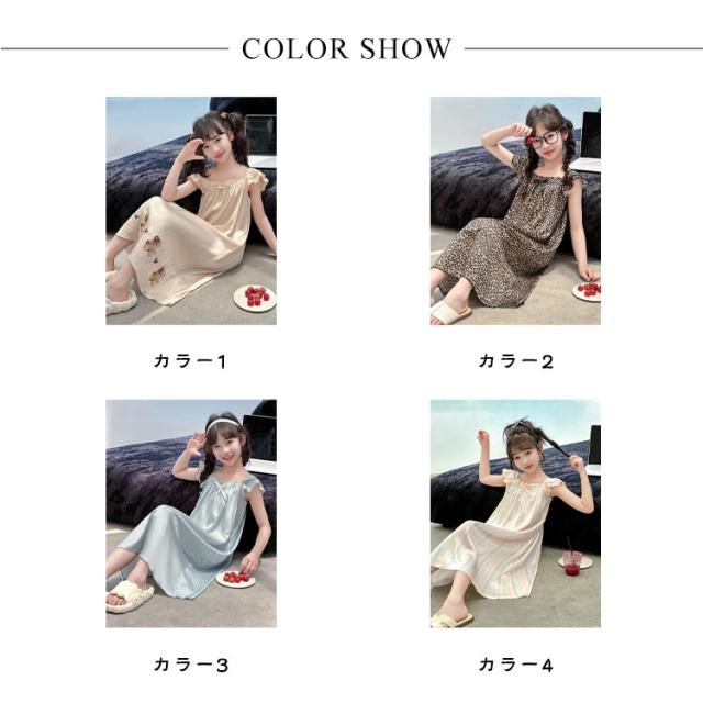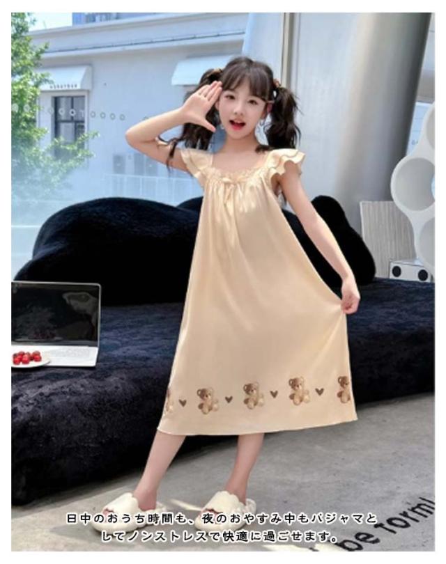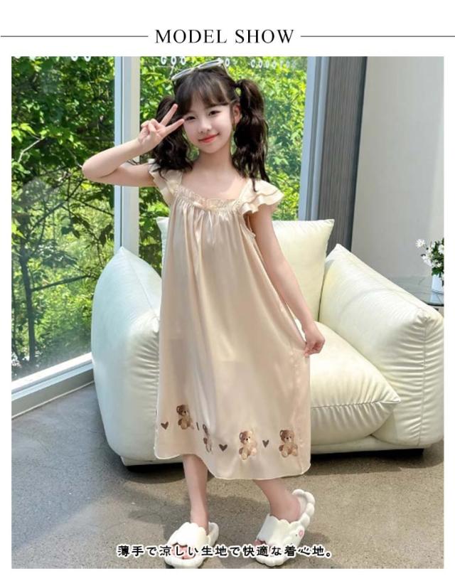 キッズ ルームウエア 子供 ワンピース 接触冷感 ルームワンピース フリル袖 姫系 冷感 ナイトウェア 女の子 部屋着 春 夏 子供服 部屋着 寝間着 寝巻き アイスシルク フリル袖 かわいい 110 120 130 140 150 160