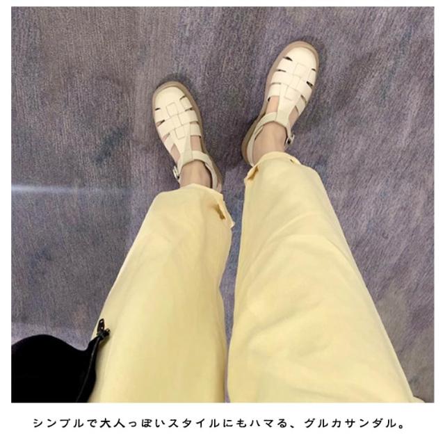 | ナチュラルな雰囲気で上品な編みデザインのおしゃれなサンダル! カジュアルすぎないデザインで大人っぽい印象に。 シンプルで大人っぽいスタイルにもハマる、グルカサンダル。 ローヒールで美脚を実現しながら、足への負担を軽減してくれます。 サンダルだけどラフになりすぎないデザインなので、キレイめのコーデに合わせても相性抜群! | |