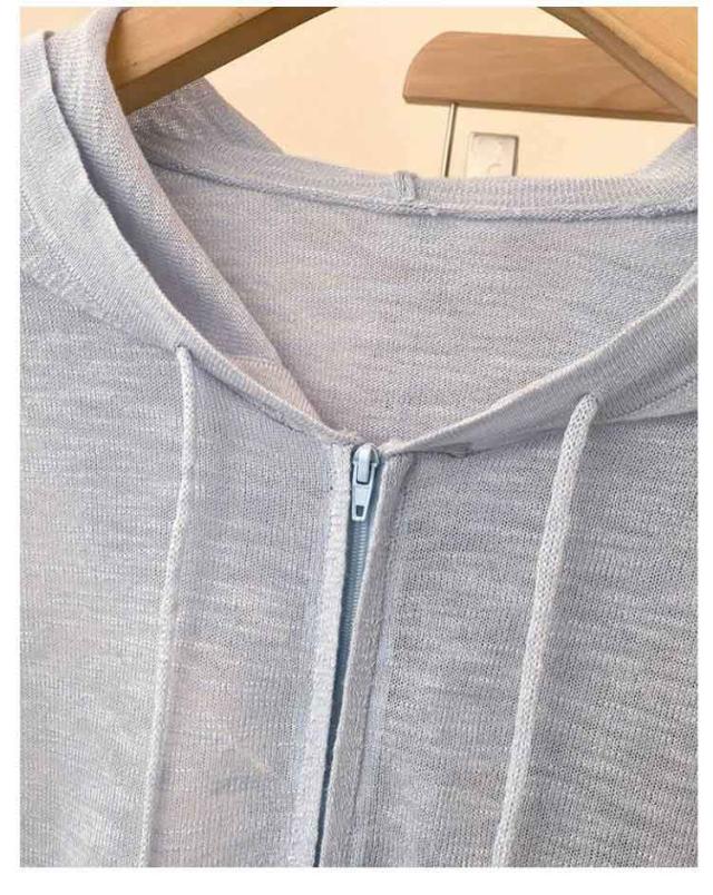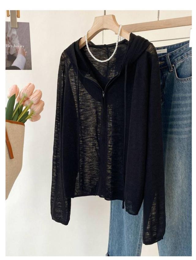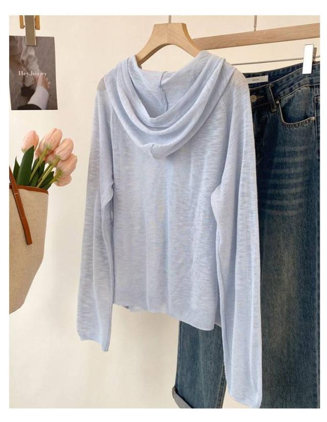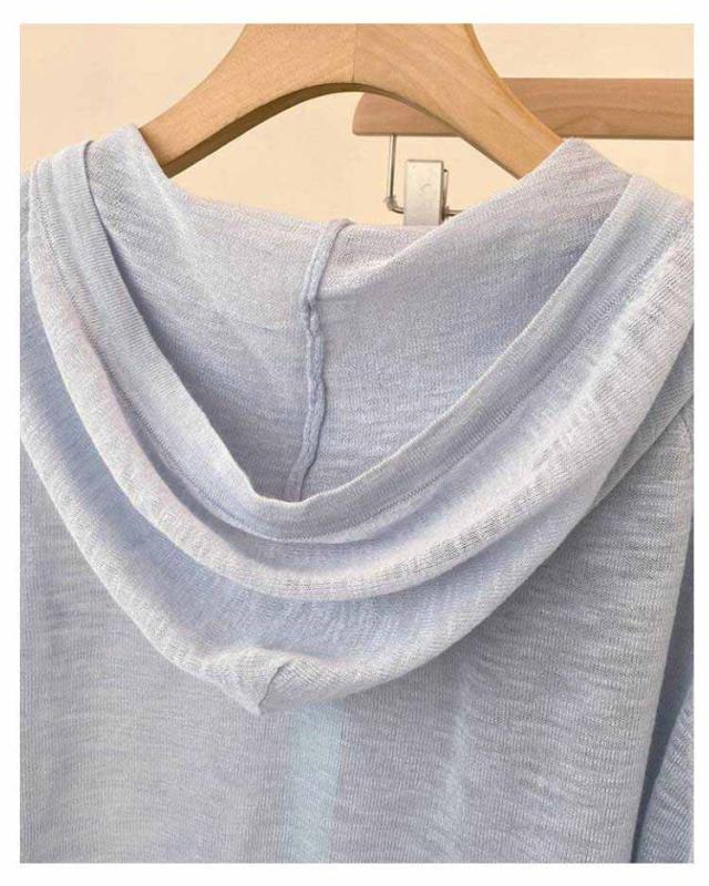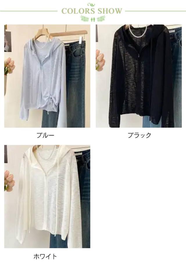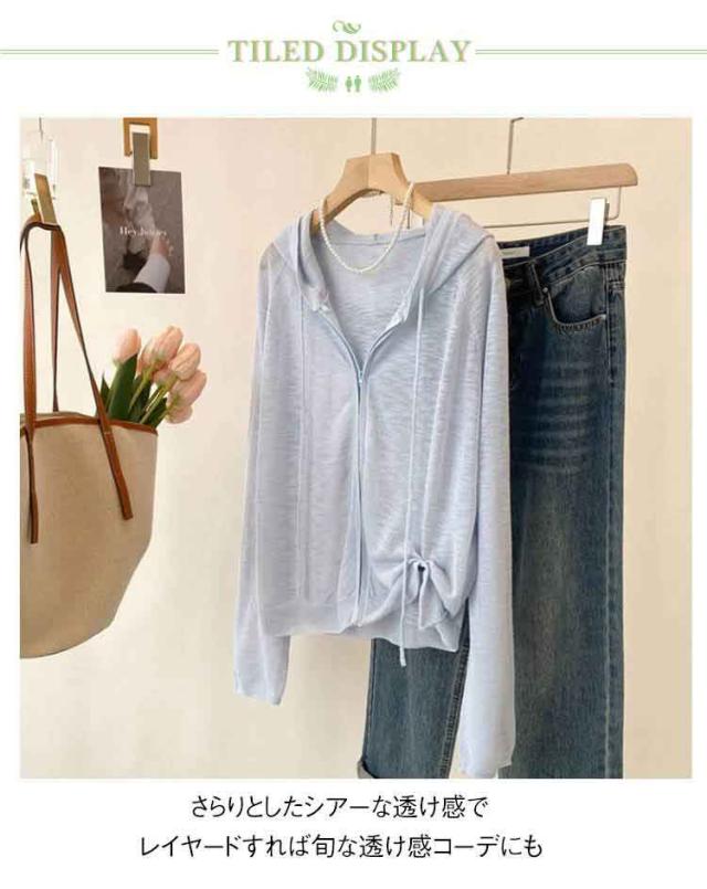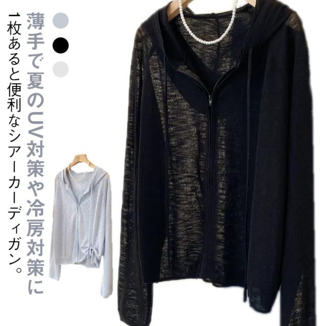 長袖 ニットカーディガン 無地 ニットパーカー 夏 フリーサイズ 日よけ防止 シアーカーディガン 紫外線対策 UVカットパーカー フード付き ジッパー 前開き 薄手 羽織 カジュアル サマーニット ゆったり サマーニット レディース
