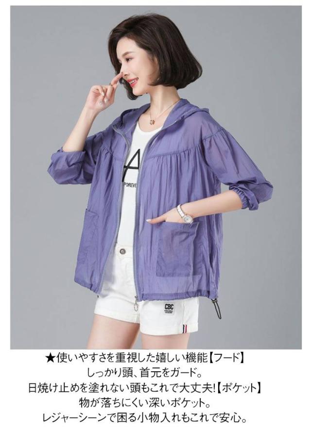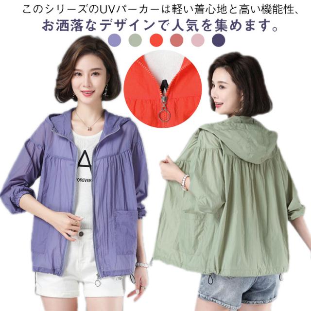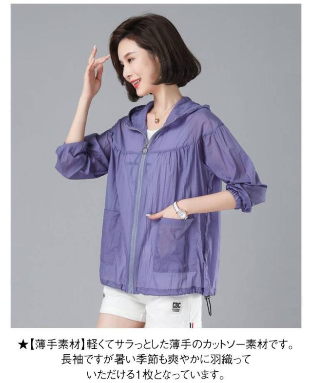 パーカー 接触冷感 トップス UVパーカー マウンテンパーカー フード付き ジップアップ ゆったり UVカット レディース 春 長袖 撥水加工 シアー 透け感 夏 羽織 UVカット パーカー おしゃれ 大きいサイズ 紫外線 UVカット 軽量アウトドア 薄手