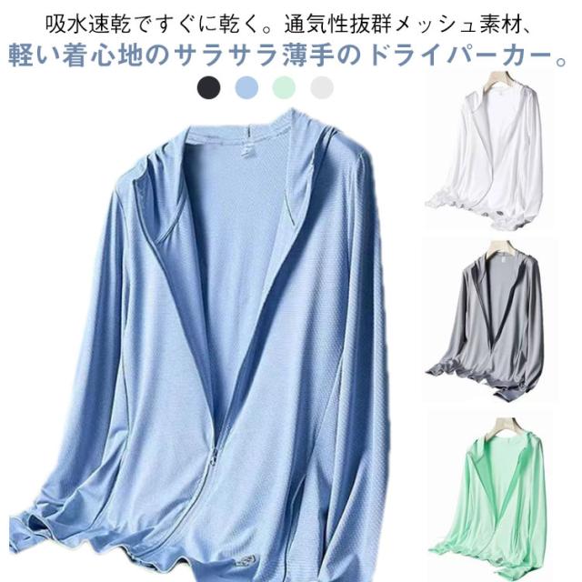 | 吸水速乾ですぐに乾く。通気性抜群メッシュ素材、軽い着心地のサラサラ薄手のドライパーカー。 汗をかいてもべたつかず、涼しく爽やかに過ごせます。 嬉しいUVカット生地で紫外線対策に効果的です。オーソドックスなドライジャージなので、春夏秋冬着回しできます。 春夏用としてはもちろん、インナーを長袖にして秋冬用のトレーニングウェアの羽織ものとしてもいかがでしょうか。 袖長めのやや大きめのゆったりシルエット。大きいサイズにも対応してますよ。 白や黒の定番はもちろん、ファッションを楽しめる きれいめ、かわいいからボーイッシュなかっこいいまで、カラーもサイズも豊富なので、誕生日プレゼントにもオススメです。 いろいろと優れた点をお伝えしました。けれど、私が本当に伝えたいことを絞るならこの1つ。洗濯が終わった時点で7割乾いている速乾力。 洗濯乾きが早いので、部屋干しもOKですよ。ラッシュガードの代わりにもいいですね。 | |