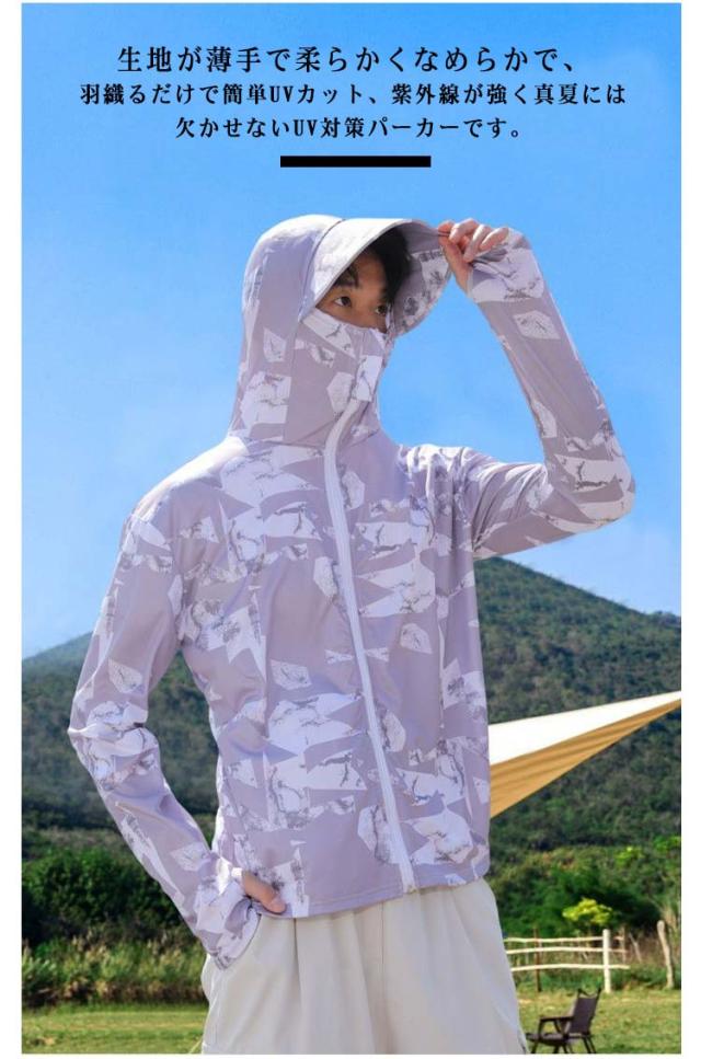 | 生地が薄手で柔らかくなめらかで、羽織るだけで簡単UVカット、 紫外線が強く真夏には欠かせないUV対策パーカーです。 お肌に有害な紫外線を99%以上カット! ★紫外線から肌を守るUVカット機能付き。 ★ランニング・ジョギング・マラソン・トレーニング・釣り・潮干狩り・フィットネスなど、様々なスポーツシーンに活躍! ★ 全体が速乾性の高いカバー力で快適なランを実現し、長距離にも対応。 | |