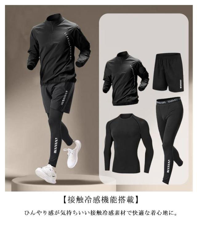 長袖 メンズ ジムウェア セット コンプレッションウェア 接触冷感 ジャージ セットアップ 吸水速乾 春 上下セット 運動着 ランニングウェア 4点セット ウェア トレーニングウェア ウォーキング ストレッチ おしゃれ トレーニングウェア 夏 秋 冬 スポーツウェア