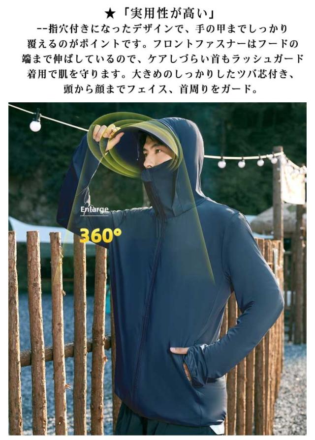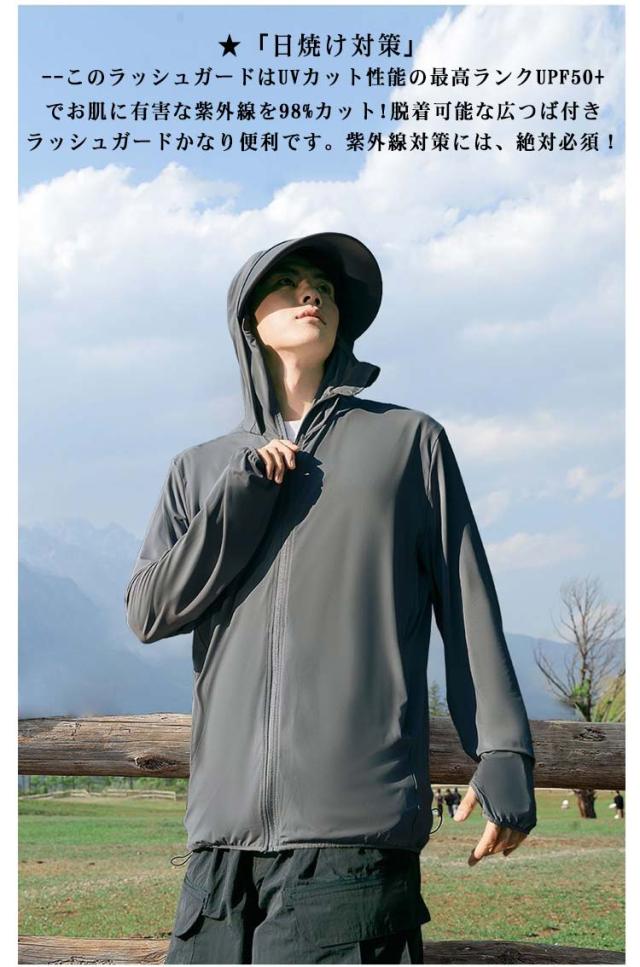 uvカット アウター メンズ パーカー パーカー 接触冷感 メンズ パーカー 日焼け 長袖 ラッシュパーカー ラッシュガード uvカット 涼しい ワークマン 通気性 UPF50+ シンプル uv 夏 フード付き 紫外線対策 吸汗速乾 指穴 薄手 涼しい アウトドア 釣り