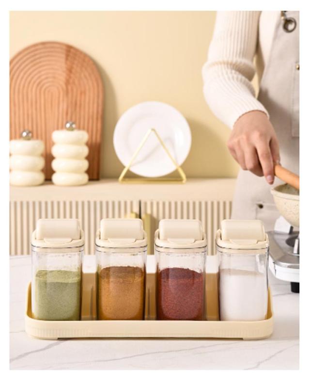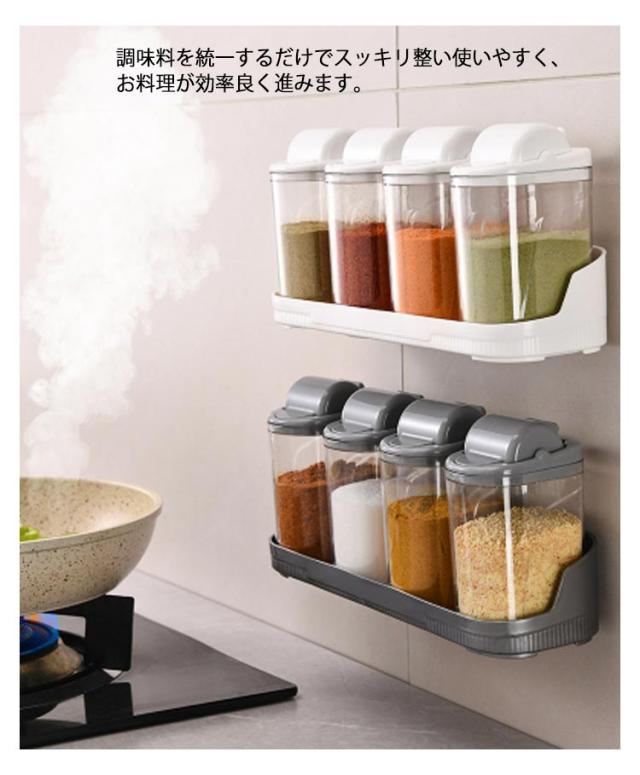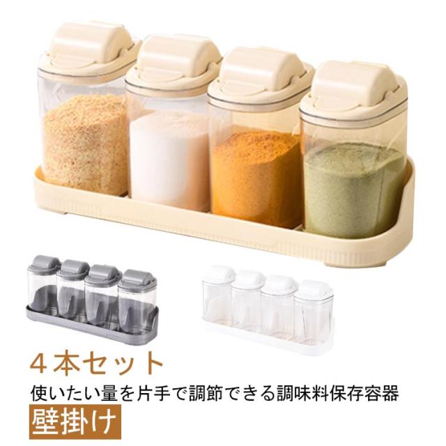 保存容器 調味料入れ スパイスボトル 調味料入れ 片手 壁掛け クリア 透明 キャニスター 4本セット 調味料ボトル スパイスケース スパイス入れ キッチン