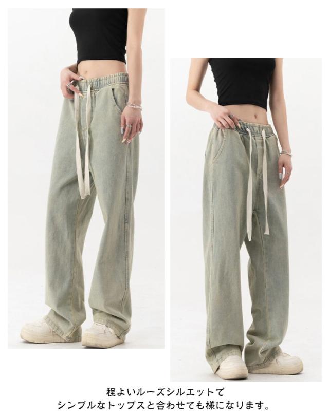 男女兼用 デニムパンツ 春 ワイドパンツ メンズ ワイドパンツ レディース 夏 長ズボン ジーパン ジーンズ ゆったり 大きいサイズ パンツ ロングパンツ ウェストゴム ボトムス ストレート Gパン カジュアル ストリート風 イージーパンツ 韓国 無地