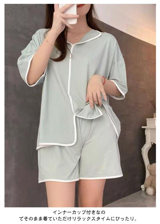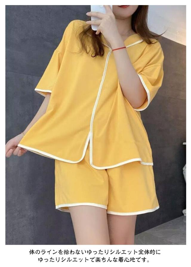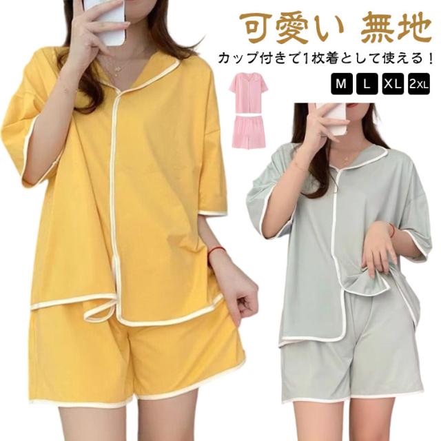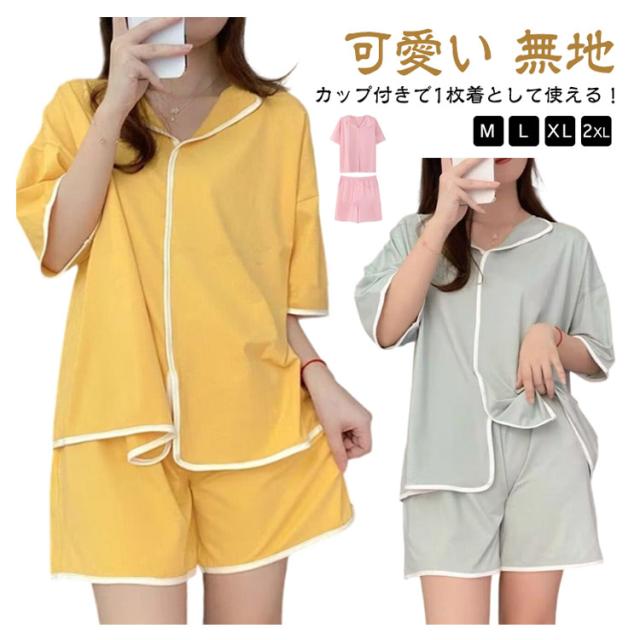 Tシャツ パジャマ パジャマ 無地 ショートパンツ ルームウェア 上下セット 半袖 夏 セットアップ 2点セット レディース 部屋着 寝巻き 春 カップ付き 半ズボン ゆったり おしゃれ 涼しい 薄手 ナイトウェア